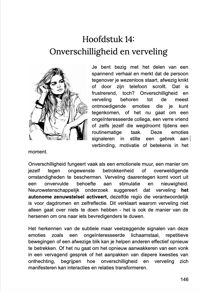 Je stopt eindelijk met het eindeloos herhalen van gesprekken in je hoofd:"Heb ik het verkeerde gezegd?" In plaats van piekeren en twijfelen, loop je weg met de zekerheid wie oprecht was, wie blufte en wie afwezig was. Met visuele aanwijzingen en simpele decodeertools weet je waar je aan toe bent—zonder eindeloos nadenken.