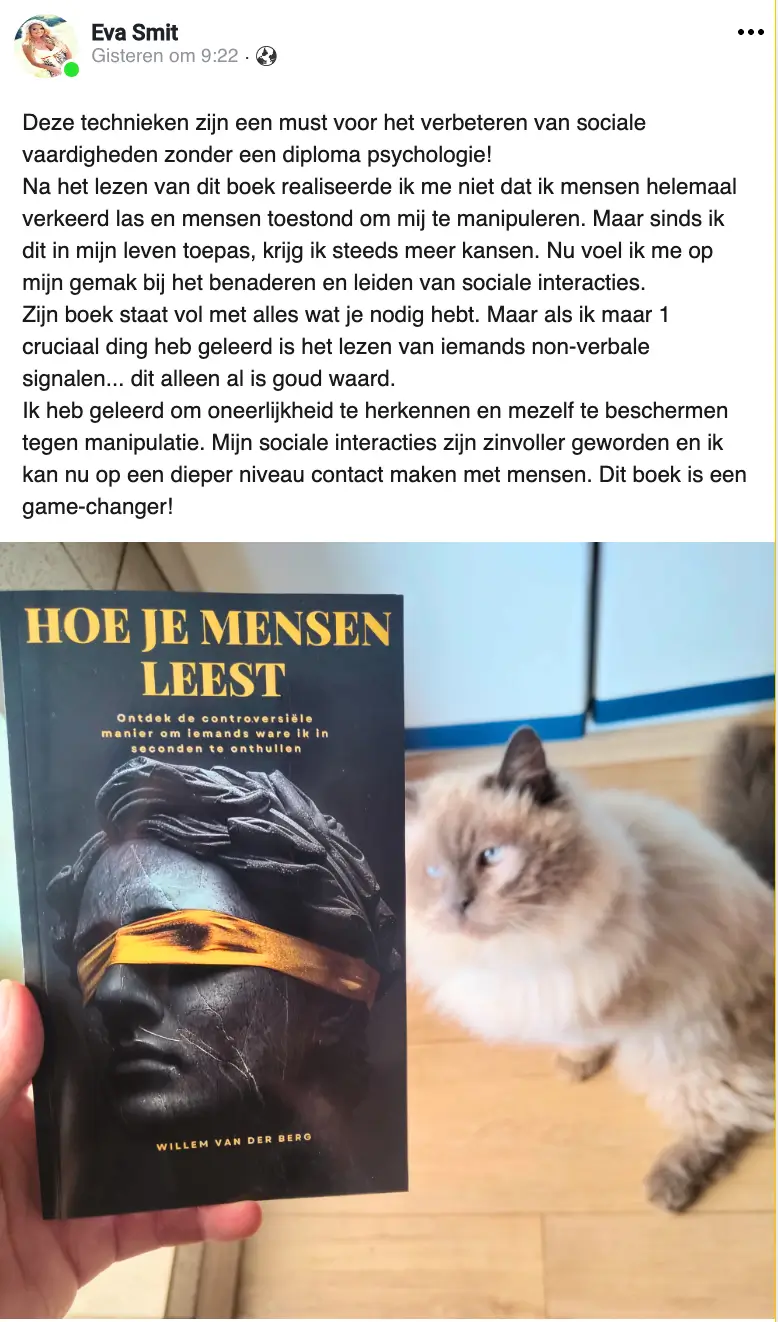 Niet alleen leer je hoe je de emoties, gedachten en intenties van mensen kunt lezen als een open boek, maar je verwerft ook de vaardigheden om je relaties te verbeteren, je communicatie te verbeteren en overtuigender en invloedrijker te worden. Deze kennis zal je sociale interacties en persoonlijke connecties transformeren, en je een voorsprong geven die maar weinig mensen ooit ervaren.