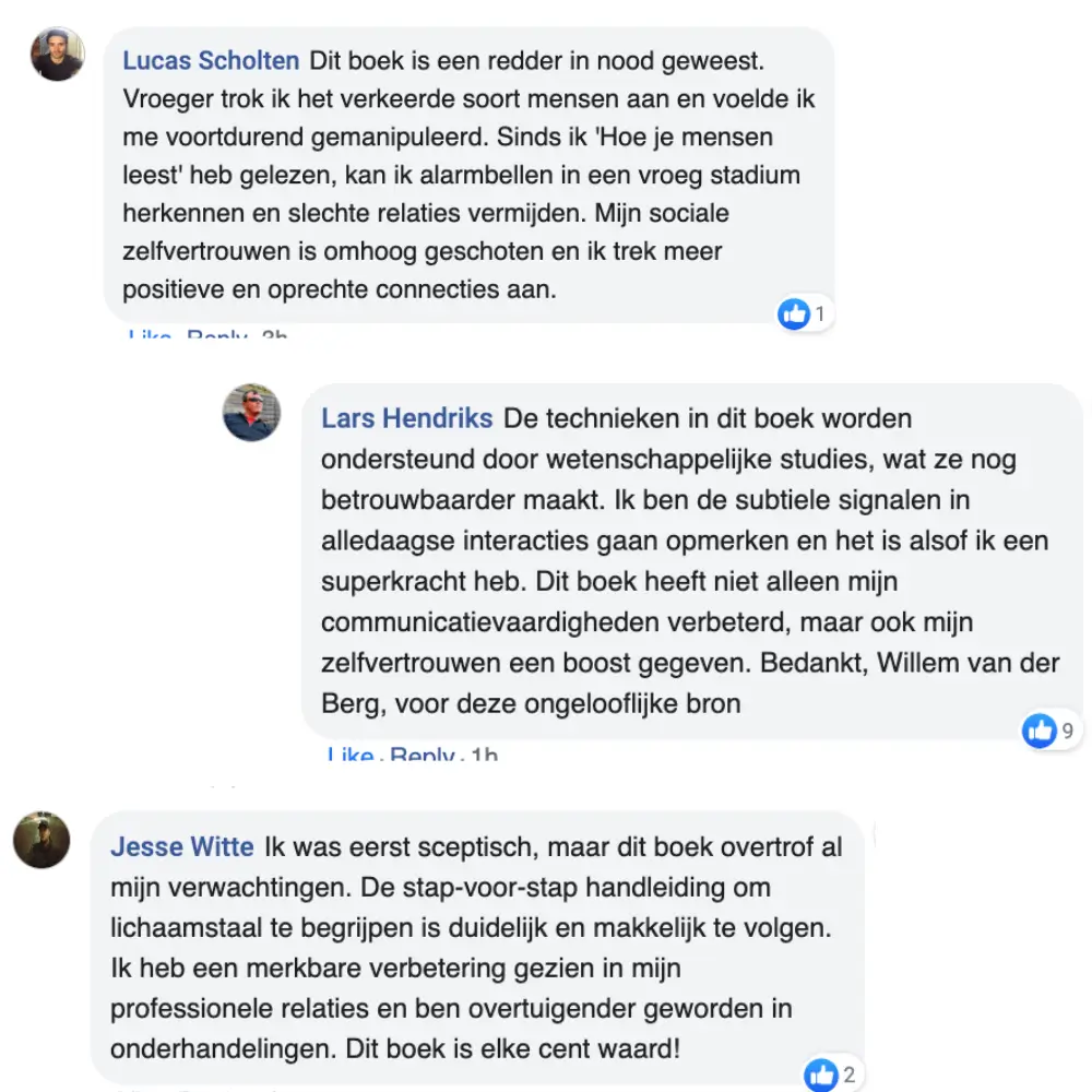 Willem van der Berg is een lichaamstaalenthousiasteling met een passie voor non-verbale communicatie. Na jaren van persoonlijke studie en observatie heeft Willem de meest effectieve technieken ontdekt om snel te leren hoe je mensen kunt lezen. Zijn doel is om lezers tijd te besparen en hen te helpen snel en betekenisvolle resultaten te behalen.